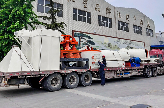 大塊石料在破碎機(jī)充分破碎后,由斗式提升機(jī)送至儲(chǔ)料斗,之后由電磁振動(dòng)給料機(jī)有序送至主機(jī)內(nèi)研磨。主機(jī)內(nèi)懸掛于梅花架上的磨輥裝置繞中心軸旋轉(zhuǎn),磨輥同時(shí)繞磨輥軸自轉(zhuǎn),在離心力的作用下,磨輥向外擺壓緊磨環(huán),旋轉(zhuǎn)的鏟刀鏟起的物料被拋向輥環(huán)之間,因磨輥的滾碾以達(dá)到粉碎和研磨作用。磨碎室的粉末被鼓風(fēng)機(jī)的氣流吹到主機(jī)上方的分析機(jī)進(jìn)行分析,細(xì)度過(guò)粗的石粉由于自重則落入主機(jī)內(nèi)重磨,合格細(xì)粉則隨風(fēng)流進(jìn)入到大旋風(fēng)收集器,收集后經(jīng)出料管排出即為成品。
