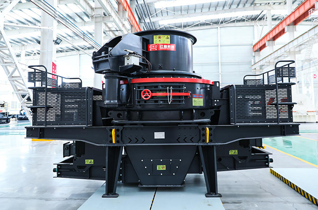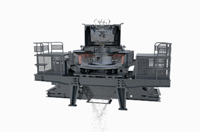 VSI制砂機運用先進的選擇性破碎和解理破碎原理,直接對物料施加足夠動能,并通過沖擊將動能轉(zhuǎn)換成克服物料所需的破碎能而破碎。物料基本沿其自然的紋理面、解理面斷裂,粒形好、自身消耗低。全中心進料:物料落入進料斗,經(jīng)中心進料孔進入高速旋轉(zhuǎn)的甩輪,在甩輪內(nèi)被迅速加速,其加速度可達數(shù)十倍重力加速度,然后高速從甩輪內(nèi)射出,首先與反彈后自由下落的另一部分物料進行撞擊,然后一起沖擊到物料襯層(石打石)或反擊塊(石打鐵)上,被反彈斜向上沖擊到渦流腔的頂部,又改變其運動方向,偏轉(zhuǎn)向下運動,又與從葉輪流道發(fā)射出來的物料撞擊形成連續(xù)的物料幕。這樣,一塊物料在渦流破碎腔內(nèi)受到兩次、或更多次撞擊、摩擦和研磨破碎作用。被破碎的物料由下部排料口排出。